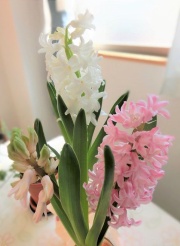 今日のベランダ 水栽培ヒヤシンスが咲きました